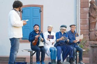 Schon zu Beginn des Abends füllte sich das Ortszentrum mit neugierigen und erwartungsvollen Besucherinnen und Besuchern. Der feierlichen Eröffnung durch Ortsbürgermeister Sven Koch folgte ein szenischer Beitrag des Chawwerusch Ensembles, die - mit Fortführung in einem zweiten Teil - mit einer Prise Selbstironie mitnahmen in den Entstehungsprozess eines fiktiven Theaterstückes.
