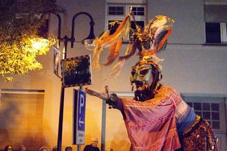 Auf der Hauptstraße luden Mitmachaktionen und Straßenkünstler zum Lachen und Tanzen ein. Das große Finale bestritt dort schließlich die italienische Theatergruppe Teatro due mondi mit ihrer Aufführung „Fiesta“, üppigem karnevalesken Straßentheater mit Liedern, Masken, Trommeln und opulenten Kostümen.