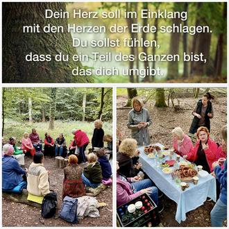 Am Samstagnachmitttag, dem 13.09.2025 trafen sich 18 Frauen bei schönem Spätsommerwetter an der Grillhütte in Herxheim zu einer besonderen Waldbegegnung. Die Gruppe war ein bunter Mix aus jungen, älteren und reifen Frauen; alle Generationen waren vertreten. Das war sehr schön und bereichernd. Keine der Teilnehmerinnen wusste so recht, was sie an diesem Nachmittag erwarten würde.
