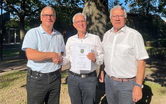 Bürgermeister Christian Sommer gratuliert Joachim Rudolph und Ewald Henkenhaf zur Wahl.