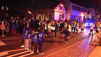 „Ohjeee, das wird eng in diesem Jahr“ war die Reaktion des sichtlich überrumpelten Sitzungspräsidenten. Doch die Rettung nahte in Form des Prinzenpaares, ihres Zeichens glühende Anhänger der Viktoria Herxheim. Prinz Rüdiger I. rief mit den Worten „wir brauchen eich, wo sinner dann?“ um sportliche Unterstützung. Und die lies nicht lange auf sich warten - ein Jugendspieler nach dem anderen schlüpfte durch das Publikum und trat im Viktoria Herxheim-Dress auf das Spielfeld, bereit die Challenge anzunehmen. Mutig forderte das Team Bürgermeister die Jugend zum Duell, da zückte die Narrhalla einen weiteren Jocker. So rief Nordén die Feuerwehr, die direkt mit Blaulicht und voller Mannstärke herbeieilte, bereit die Narrhalla zu unterstützen. Die Amtsträger erkannten sofort ihre Chancenlosigkeit, sie kapitulierten und gaben den Weg frei zum Rathaussturm.