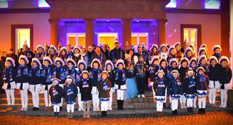 Punkt 19:11 Uhr marschierte der CVH Hofstaat mit dem Prinzenpaar Inna I. und Rüdiger I sowie Charlotte I und Janis I als Kinderprinzenpaar mit musikalischer Begleitung der Kolpingskapelle vor das Rathaus, bereit die Macht im Rathaus an sich zu reißen.