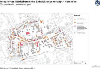 | 1) | Das Grundstück muss in dem Erneuerungsgebiet belegen und im Plan 10 Maßnahmen Privatgebäude des ISEK als modernisierungs- und instandsetzungsbedürftig ausgewiesen sein (Farbe im Plan Rot, Orange und rotes Dreieck). |