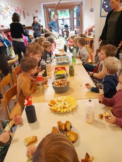 Ein großes Dankeschön an unsere Kita-Eltern: Sie waren wie immer sehr engagiert und haben das Frühstück mit leckeren Spenden rundum bereichert.