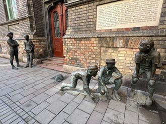 Ab Montag ging es dann mit der Projektarbeit los. Hier befassten sich die ungarischen und deutschen Schüler die Woche über mit dem Jugendbuch „Die Jungen von der Paulstraße“ von Ferenc Molnár, einem großen ungarischen Schriftsteller und Dramatiker. Die Handlung des Jugendromans spielt im VIII. Bezirk der Stadt Budapest (Józsefváros). Was lag daher näher, als die Spielorte der Lektüre in Budapest aufzusuchen?
