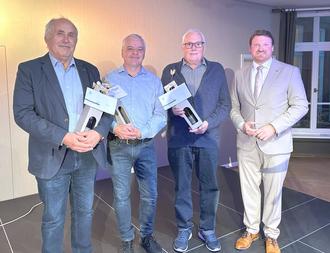 Otto Seither, Markus Dudenhöffer und Reinhard Bangel mit Ortsbürgermeister Sven Koch.