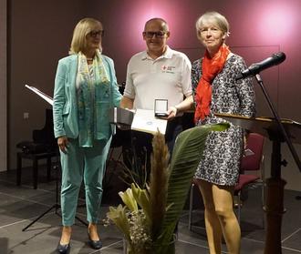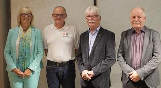 Ulla Johnson, stellvertretende Vorsitzende des DRK Ortsverbands Herxheim, Joachim Ohmer, zweiter Vorsitzender der MSVH, und Tilbert Müller, langjähriger Freund Helmut Dudenhöffers, sprachen die Laudationes auf die Geehrten, bevor der Abend bei Wein und Häppchen gemütlich ausklang.