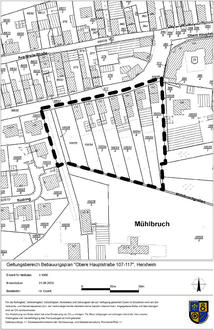 Der räumliche Geltungsbereich des Bebauungsplanes ist in dem nachfolgenden Planausschnitt durch eine schwarze, breit gestrichelte Linie kenntlich gemacht und umfasst das Gebiet der Anwesen „Obere Hauptstraße 107-117“.