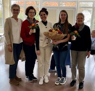 Beim Begegnungstreff Ü60 am 28.10.2025 verabschiedete Beigeordnete Karin Roth im Kreis der Senior:innen Johanna Schulmeyer in ihrem Amt als kommissarische Seniorenbeauftragte und bedankte sich mit wertschätzenden Worten für die Stellvertretung während der vakanten Zeit und das gute Miteinander. Seit April d. J. hatte Frau Schulmeyer ad hoc, zusätzlich zu ihrer Arbeit beim Sozialdienst im Altenzentrum St. Josef, stundenweise die Seniorenarbeit im Haus der Begegnung kommissarisch übernommen. Sie sorgte in den vergangenen Monaten dafür, dass die Basis-Angebote der Seniorenarbeit wie u.a. der Begegnungstreff Ü60, der Hayna Treff sowie die Ehrenamtsbörse weiterhin angeboten wurden. Des Weiteren war sie immer dienstags und donnerstags zu den offenen Sprechstunden im Haus der Begegnung als Ansprechpartnerin erreichbar. Frau Roth überreichte Frau Schulmeyer zum Abschied als Dank für ihre wertvolle Arbeit einen bunten Herbststrauß. Seit 01.11.2025 ist Johanna Schulmeyer nun wieder vollständig beim Sozialdienst im Altenzentrum St. Josef beschäftigt. Auch dankte Frau Roth den beiden ehrenamtlichen Helferinnen Erika Wildt und Christine Speth für ihre hilfreiche Unterstützung und Mitwirkung; sei es beim Begegnungstreff Ü60 sowie auch montags bei den Lauftreff-Gruppen. Als Dankeschön und Wertschätzung für ihr ehrenamtliches Engagement überreichte Frau Roth den Damen jeweils einen Blumengruß.