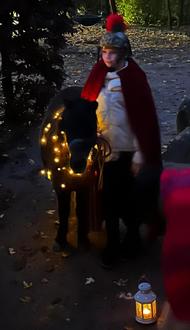 Und selbst Pferd und Reiter improvisierten mit und erschienen in einer „kleineren Ausgabe“ von St. Martin mit leuchtendem Pony und strahlendem Begleiter. Für unsere Kinder ein sehr schönes Erlebnis.