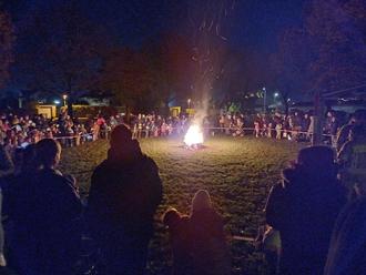 Leuchtende Kinderwägen und Laternen zogen von der Kita aus, entlang der Landauer Kapelle über den Sebastiansring zurück zum Bolzplatz, wo das große Martinsfeuer für eine schöne und besinnliche Stimmung sorgte.