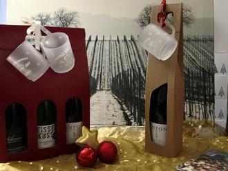 Suchen Sie ein nettes Geschenk für einen Adventsbesuch oder zu Weihnachten? Das Team des Vereins Südliche Weinstrasse Herxheim e.V. hat eine schöne Geschenkidee vorbereitet: Winzerglühweine, in edlen Geschenktaschen verpackt, und dazu die Herxemer Glühweintassen mit Logo. Im 2 er und im 3 er Paket sind noch 2 Postkarten mit Herxheimer Motiven enthalten. Erhältlich sind die Pakete an der Infotheke im Rathaus.
