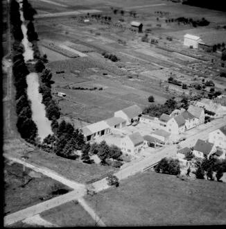 Zum Zeitpunkt dieser Aufnahme von 1958 ist der Panzergraben schon fast 20 Jahre alt. Am Ende der Luitpoldstraße sind die Häuser schon an das Gewässer herangerückt. Ansonsten liegt der Panzergraben noch weit vom Dorf. Mittlerweile haben Südring und die Albert-Detzel-Straße mit ihren Stichstraßen den Panzergraben eingeholt und eingefasst.