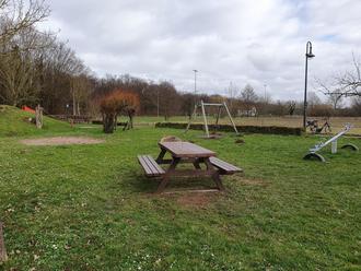 Unsere neue Picknickbank auf dem Geiersching-Spielplatz beim Sportplatz ist eingetroffen.
