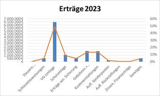 Die Erträge im Ergebnishaushalt in Höhe von 13.145.565 € gliedern sich wie folgt: