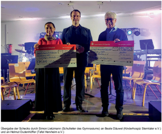 Zu Beginn des Konzerts wurde der Erlös aus dem letztjährigen Spendenlauf des PAMINA-Schulzentrums übergeben: Die Tafel Herxheim e. V. und das Kinderhospiz Sterntaler e. V. erhielten jeweils einen Scheck in Höhe von 13.671,08 Euro.