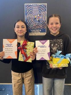 Aufgrund unserer Schülerzahl durften wir zwei Kandidatinnen, d.h. die Erst- und Zweitplatzierte des schulinternen Vorlesewettbewerbs, schicken.