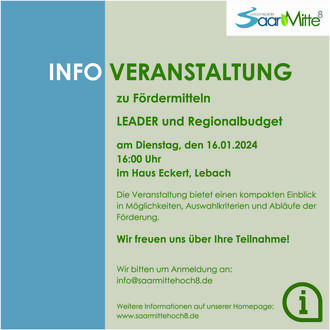 Die Vorhaben wurden aus Mitteln des Bundes und des Saarlandes im Rahmen der Gemeinschaftsaufgabe zur Verbesserung der Agrarstruktur und des Küstenschutzes über die LEADER Region SaarMitte8 e.V. gefördert.
