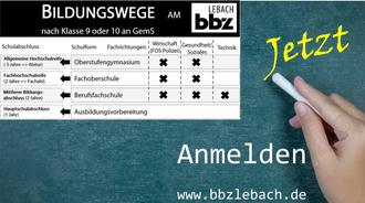 www.bbzlebach.de: Dort finden Sie im Bereich beraten/Bildungswegeberatung Erklärvideos zu den möglichen Bildungswegen im beruflichen Schulsystem, die sich nach Klassenstufe 9 und 10 an Gemeinschaftsschulen für Sie anbieten.