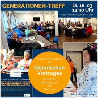 GENERATIONENTREFF am Dienstag 18. März, 14:30 Uhr im Haus Antonius, Schillerstraße 26A