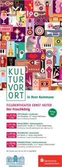 In der Woche vom 31. März bis 3. April geht es im Regionalverband Saarbrücken gleich vier Mal märchenhaft zu. Im Rahmen der Reihe KulturVorOrt des Kulturforums Regionalverband Saarbrücken präsentiert das Figurentheater Ernst Heiter aus Peenehagen mit „Der Froschkönig“ eine humorvoll-originelle Interpretation des Klassikers der Brüder Grimm für Kinder ab vier Jahren in den Gemeinden Riegelsberg und Heusweiler sowie in den Städten Püttlingen und Friedrichsthal.