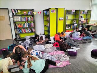 Lesen ist langweilig? Am 20.02.2025 veranstaltete das Team der neuen Bibliothek der Leonardo-da-Vinci-Schule einen Leseabend zu Jeff Kinneys Comicroman „Gregs Tagebuch – Von Idioten umzingelt“, um das Gegenteil zu beweisen. Die Mitglieder der „Bücher-AG“ kümmerten sich deshalb im Vorfeld mit großem Engagement um die Auswahl des Buches, das Basteln passender Dekoration und die Organisation von Snacks und Getränken. Während des Leseabends wurden die ersten Seiten des Buches gelesen und mit den entsprechenden Szenen aus dem Film verglichen, wobei die TeilnehmerInnen viele Gemeinsamkeiten, aber auch Unterschiede feststellten. Die von den SchülerInnen mitgebrachten Decken und Kissen sorgten zusätzlich für eine gemütliche Atmosphäre. Anschließend wurde der Text des Buches durch knifflige Rätsel und Teamspiele genauer unter die Lupe genommen, um den Lösungscode zu finden, mit dem sich die Teams ihre Belohnung sicherten. Die Rückmeldung der SchülerInnen am nächsten Morgen sprach für sich: „Der Abend hat wirklich Spaß gemacht!“