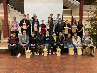 Gemeinsam mit ihrer Klassenlehrerin Frau Speicher nahm die Klasse 9N2 im Rahmen des Modellprogramms Bildung-Nachhaltigkeit-Kommune am Projekt "Meisen-Nistkästen zur ökologischen Schädlingsbekämpfung der Eichenprozessionsspinner auf dem Schulgelände" teil. Das Ziel des Projektes ist die dauerhafte Ansiedlung von Meisen sicherzustellen, welche als natürliche Feinde die Eichenprozessionsspinner bekämpfen sollen. Der Eichenprozessionsspinner ist aufgrund seiner giftigen Raupenhaare für den Menschen gesundheitsschädlich und stellt zudem eine erhebliche Belastung für die befallenen Eichen dar. Jene sind deutlich anfälliger für andere Krankheiten und können schlimmstenfalls sogar absterben. Um dies zu verhindern, wurden gemeinsam mit dem NABU-Beauftragen Reiner Petry und Michael Loew vom Landkreis Saarlouis acht Meisen-Nistkästen und vier Fledermauskästen gebaut und anschließend an geeigneten Stellen auf dem Schulgelände befestigt. Organisiert wurde die wichtige Aktion von Frau Sadik, der Schulentwicklungsplanerin des Landkreis Saarlouis.