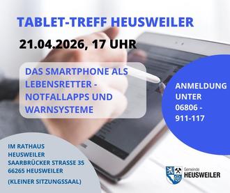 Anmeldungen sind telefonisch unter 06806-911-117 möglich oder per E-Mail bei m.meiser@heusweiler.de. Es sind noch wenige Plätze frei.