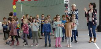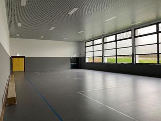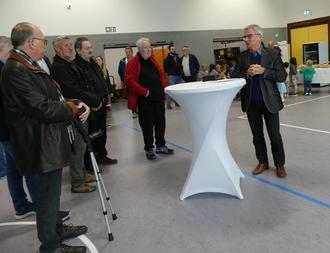 Im Rahmen einer kleinen Feierstunde wurde am Dienstag, den 18. April 2023 die St. Barbarahalle im Ortsteil Kutzhof wiedereröffnet. Viele Gäste, darunter Vertreter der Politik, Vertreter der ortsansässigen Vereine, Mitarbeiter der Verwaltung und Kinder der Kita Kutzhof mit ihren Eltern nahmen an der Feier teil. Kita-Leiterin Ursula Himbert und einige Kinder der Kita präsentierten den Gästen drei musikalische Darbietungen und wurden von den Zuschauern mit großem Applaus belohnt. Bürgermeister Thomas Redelberger begrüßte alle anwesenden Gäste und informierte detailliert über die Umbaumaßnahmen. Nach länger andauernder Bauphase ist der Umbau und die energetische Sanierung der St. Barbarahalle in Kutzhof nun abgeschlossen. Entstanden ist eine moderne, energieeffiziente und lichtdurchflutete Multifunktionshalle, in der sowohl die im Ortsteil ansässigen Vereine, als auch die benachbarte Kita wieder den Sport- und Veranstaltungsbetrieb aufnehmen können. Obwohl die Halle in ihrer Länge von 24 m auf 21 m reduziert wurde, wirkt sie durch die großzügig verglasten Hallenfenster optisch größer als vor dem Umbau. Es war planerische Intension durch die Verglasungen, die spielerisch von klarverglast nach transluzent wechseln, den Bezug von Innen- und Außenraum herzustellen. Erneuert wurden unter anderem der komplette Hallenboden, der als moderner Schwingboden mit Vinyl-Oberbelag ausgestattet wurde. Des Weiteren wurden die Fassade, das komplette Dach und die Hallendecke erneuert, energieeffizient gedämmt und mit einer zeitgemäßen Unterdecke, die sowohl die Heizung als auch die LED-Beleuchtung beinhaltet, ausgestattet. Auch die Umkleide-, Dusch- und Sanitärräume wurden mit heller Farbgebung und moderner Gebäudetechnik umgestaltet. Die Kosten für den Umbau und die energetische Sanierung der Halle beliefen sich auf rd. 800.000 Euro. Gefördert wurde die Maßnahme sowohl durch das Zukunftsenergieprogramm kommunal (ZEP kommunal) als auch durch das Städtebauförderprogramm „Kleinere Städte und Gemeinden“ auf Bundes- und Landesebene.
