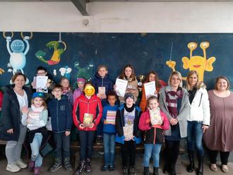 Frau Faust, Frau Straß und Frau Pfeiffer hatten für jede Klassenstufe einen Text ausgewählt, den die Kinder dann vorlesen mussten. Alle waren ein bisschen aufgeregt, aber zeigten mit Bravour ihr Können. Sie lasen so gut, dass die Jury sich kaum entscheiden konnte. Bei der feierlichen Siegerehrung wurde verkündet, wer Lesekönig und Lesekönigin der Schule ist. Alle bekamen als Preis ein tolles Buch und eine Urkunde.