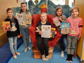 Der zweite „tierische“ Wettbewerb in diesem Frühjahr richtete sich an unsere Leseratten an der Schule. Der Lesekönig oder die Lesekönigin der Dependance Eiweiler sollte gekürt werden. Alle Kinder lasen einen Abschnitt eines geübten und eines fremden Textes und im Anschluss daran wurden die Besten der einzelnen Klassen ausgesucht, die dann auf Schulebene gegeneinander antreten sollten. Und es war schließlich eine reine Prinzessinnenrunde, die sich vor der Jury versammelte: Alina und Alena vertraten die zweiten Klassen, Hanna wurde Siegerin in Klasse 3 und die vierten Klassen schickten Hannah und Loreley ins Rennen.