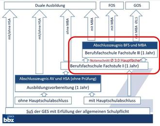 Wer einen Notendurchschnitt von 3,0 in den schriftlichen Prüfungsfächern (MAT, DEU, Fremdsprache und Beruflichen Kompetenz) nachweisen kann, hat die Möglichkeit, die Fachstufe II (11.Klasse) zu besuchen, um den mittleren Bildungsabschluss zu erwerben.