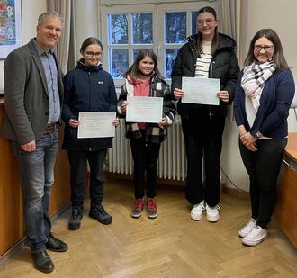 v.l.n.r.: Herr Dettloff, Emily Maciolek, Allison Frantz, Marie Bohlander, Frau Scheid