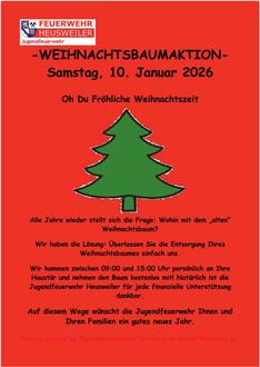 Wir kommen zwischen 09:00 und 15:00 Uhr persönlich an Ihre Haustür und nehmen den Baum kostenlos mit! Natürlich ist die Jugendfeuerwehr Heusweiler für jede finanzielle Unterstützung dankbar.