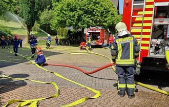 Im Rahmen des Feuerwehrfestes des Löschbezirk Lummerschied wurde die Übung bei Sonnenschein durchgeführt, was viele Zuschauer anzog.