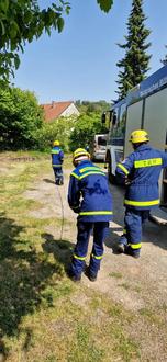 Als Übungsobjekt diente die in unmittelbarer Nähe zum Gerätehaus liegende Kirche, sowie ein unterhalb liegender Platz, auf dem ein Verkehrsunfall mit zwei PKW simuliert wurde.