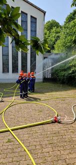 Bereits kurz nach dem Sirenenalarm rückte das erste Fahrzeug an. Zunächst galt es die Lage zu erkunden. Durch einen technischen Defekt im Heizungsraum der Kirche war es zu einem Brand gekommen. Nach und nach trafen alle weiteren Fahrzeuge beider Organisationen an der Einsatzstelle ein. Zwei vermisste Personen wurden durch die Jugendfeuerwehr aus der Kirche gerettet. Die THW-Jugend rettete eine Person von einem Vordach neben der Kirche, die sich durch den Brand dorthin in Sicherheit brachte.