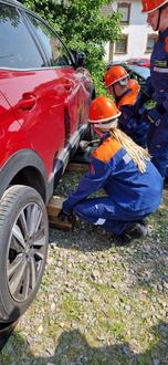 In der Folge des Brandes kam es unterhalb der Kirche zu einem Verkehrsunfall zweier PKW. Hier sicherte die Jugend des THW einen PKW, so dass dieser nicht einen Abhang hinunter stürzten konnte. Die Jugendfeuerwehr befreite eine Person, die sich unter einen der Fahrzeuge befand.