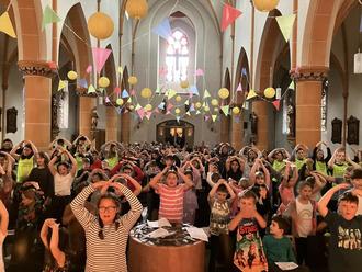 Die Kinder-Bibel-Woche mit dem Motto „Kommen. Gucken. Wundern“ der Formatwerkstatt Püttlingen (Ein Ort von Kirche) ist am Samstag mit einem Gottesdienst zu Ende gegangen. Auch viele Eltern der 102 Kinder und Interessierte waren dazu in die Liebfrauen-Kirche gekommen. Sie konnten miterleben, mit welcher Begeisterung die Kinder bei den Mitmach-Liedern der MPG-Band und beim Bibel-Theater der Teamer*innen dabei waren.