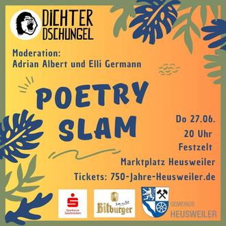 Am Donnerstag, 27.6.24, 20 Uhr findet als erste Abendveranstaltung im Rahmen der 750 Jahrfeier ein "Poesie"-Wettbewerb im Zelt statt. Sechs Künstler treten mit ihren selbst erstellten Geschichten oder Musikstücken gegeneinander an.Von lustig bis nachdenklich von Ballade bis Rap, mit oder ohne Musik, aber immer unverkleidet nur ein/e (1) KünstlerIn auf der Bühne mit einer Geschichte der einen in ihren Bann zieht. Und dann entscheidet das Publikum, wer in die nächste Runde einzieht, wer noch eine weitere Geschichte darbieten darf. Zu gewinnen gibt es "Die Heusweiler Pfeife" - gestiftet von Orgelbau Hugo Mayer, Heusweiler -, die im Jahre 2024 zum ersten Mal verliehen wird. Der Eintritt kostet 10 Euro. Karten können selbstverständlich auch an der Abendkasse gekauft werden.