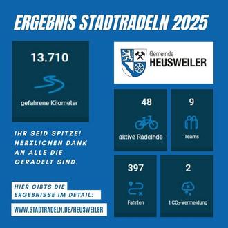 Das Stadtradeln 2025 in Heusweiler ist erfolgreich zu Ende gegangen – bereits zum neunten Mal nahm unsere Gemeinde an dieser nachhaltigen Aktion teil. Insgesamt haben 48 engagierte Radfahrerinnen und Radfahrer in 9 Teams vom 1. bis 21. Juni beeindruckende 13.710 Kilometer klimafreundlich zurückgelegt. Damit verzeichnete Heusweiler das bisher beste Ergebnis seit Beginn des Wettbewerbs und setzt ein starkes Zeichen für den Umweltschutz und die Förderung nachhaltiger Mobilität.