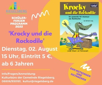 ‚Krocky und die Rockodile‘ ist ein Hörspiel- und Theaterprojekt mit Lesung für Kinder ab 6 Jahren. Krocky, ein junges Nilkrokodilmännchen, findet nach einem Unwetter am Nilufer Musikinstrumente, die dort angeschwemmt wurden. Davon fasziniert gründet er mit Freunden die Band „Krocky und die Rockodile“. Mit Hilfe ihres Managers, des Nilpferdes Hippo, touren sie am Nil entlang, müssen gefährliche Abenteuer bestehen und lernen die positiven und negativen Seiten des Berühmtseins kennen. Schließlich gelangen sie zur Erkenntnis, dass das Musizieren für sich oder andere, ob in großem oder kleinem Rahmen, eine wertvolle Bereicherung des Lebens darstellt. Ein Nachmittag von und mit Gerhard Lang, Glanghaus Hörbuch Produktion