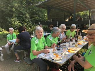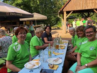Am 09.Juli 2024 war es so weit: Unsere Spartenleiterin Ibi hatte zum jährlichen Sommerfest eingeladen. Unsere Frauen sind nicht nur fleißige Sportlerinnen, sondern auch aktiv, wenn es ums Feiern geht. Wie es sich für Turnerinnen gehört, begann das Fest mit einer kleinen Wanderung durch den kühlen Friedwald, was bei der tropischen Temperatur von über 30 Grad plus als sehr angenehm empfunden wurde.Bei schönstem Wetter verbrachten wir einen angenehmen und fröhlichen Nachmittag und Abend in und um das Naturfreundhaus Kirschheck. Nach der Wanderung empfing uns bereits der Duft von gegrillten Würstchen, und es standen viele, schmackhafte, von den Frauen selbst hergestellte Salate bereit. Für kühle Getränke war auch gesorgt. Wir hatten eine angenehme, entspannte Zeit mit vielen interessanten Gesprächen, insgesamt ein gelungenes Fest. Dank an alle Frauen für die mitgebrachten Salate und ganz besonderen Dank an Armin und Emerich, die im wahrsten Sinne des Wortes schweißgebadet bei über 30 Grad Lufttemperatur am Grillfeuer ( bei über 40 Grad) schufteten.