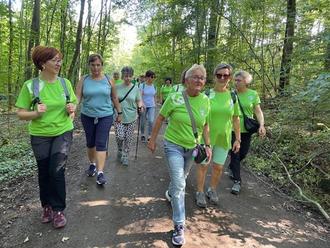 39 Turnerfrauen des TV Holz 02 e.V., fast alle in ihren vereinsfarbenen grünen Shirts, verwandelten den Wald in ein Grün ohne Ende.