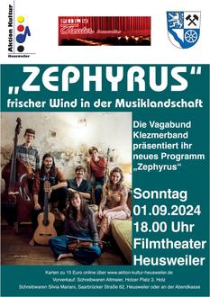 Zephyrus ist die zweite CD der Klezmerband Vagabund, die aus Lübeck stammt. Im Rahmen ihrer Deutschlandtournee gastiert sie auch in Heusweiler.