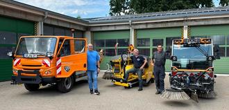 Bürgermeister Thomas Redelberger begutachtete die Fahrzeuge und ließ sich vom Bauhofleiter Frank Port und dem Werkstattleiter Frank Schäfer alles genau erklären. Er zeigte sich sichtlich zufrieden mit den Neuanschaffungen.