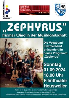 Zephyrus ist die zweite CD der Vagabund Klezmerband, die aus Lübeck stammt. Im Rahmen ihrer Deutschlandtournee gastiert sie auch in Heusweiler.