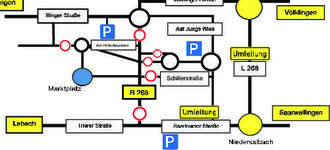 | • | Wegen der Vollsperrung des Teilbereiches der B268 ergibt sich für die Verkehrsteilnehmer aus Richtung Saarbrücken Richtung Lebach folgende Umleitungsempfehlung: |