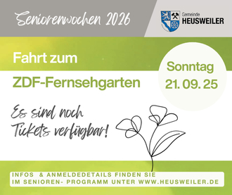 Am Sonntag, 21. September 2025, lädt das Seniorenprogramm der Gemeinde Heusweiler zu einem besonderen Erlebnis ein: Wir besuchen die Live-Sendung des ZDF Fernsehgartens auf dem Mainzer Lerchenberg!