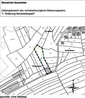 Der Rat der Gemeinde Heusweiler hat gemäß § 10 Abs. 1 Baugesetzbuch (BauGB) in der Fassung der Bekanntmachung vom 3. November 2017 (BGBl. I S. 3634) und unter Berücksichtigung der aktuell gültigen Änderungen in seiner öffentlichen Sitzung am 22.09.2022 den vorhabenbezogenen Bebauungsplan „1. Änderung Handwerkerpark“ mit Vorhaben- und Erschließungsplan in den Ortsteilen Heusweiler und Kutzhof, bestehend aus der Planzeichnung (Teil A), dem Textteil (Teil B) und der Begründung, als Satzung beschlossen. Dieser Beschluss wird hiermit gem. § 10 Abs. 3 BauGB ortsüblich bekannt gemacht.